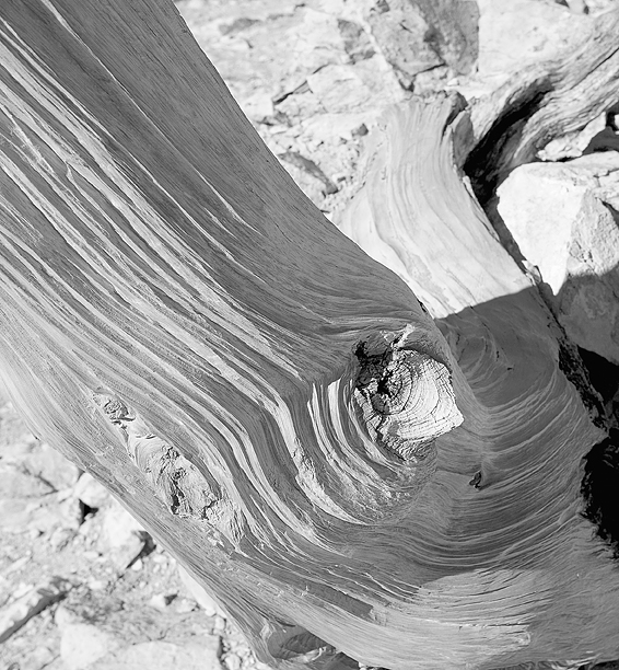 I took this photo many years ago but am still very fond of it. The texture of this section of Bristlecone pine just lent itself to printing too. The oldest tree on earth, it grows in the High Sierras.