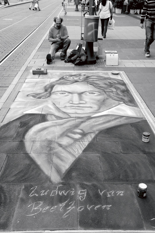 I saw this chalk pastel drawing while walking in a city in Germany in 2012. This person has remarkable talent. I think Beethoven would approve, perhaps even applaud – although that may fall on deaf ears if you forgive the pun. I’m always saddened when people just walk by something like this completely ignoring such creativity. I suppose shopping is more important to them. I for one, thoroughly appreciated this street art.