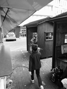 Another “Cartier Bresson” moment. This boy was safeguarding his just acquired sausage. I forfeited my place in line briefly to take this photo. He was on the move.